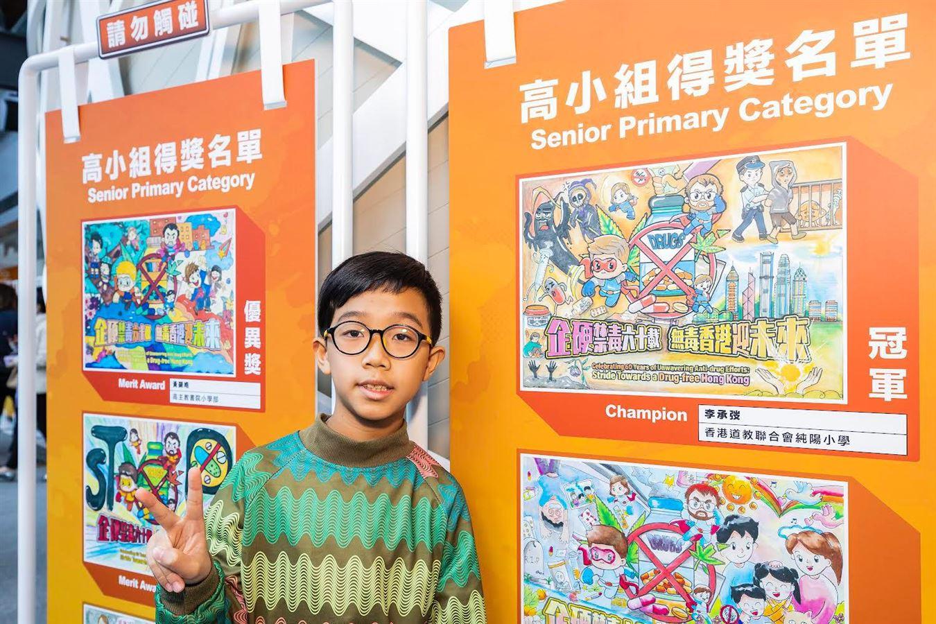 恭賀4A李承弢 於保安局禁毒處和禁毒常務委員會「企硬禁毒六十載 無毒香港迎未來」填色及繪畫比賽取得 高小組 冠軍。